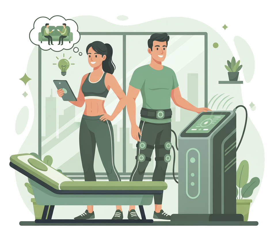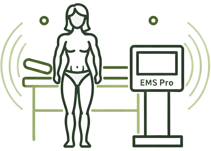 EMS (Elektriksel Kas Stimülasyonu) cihazı, düşük frekanslı elektrik akımları ile kas liflerini uyararak kasılma ve gevşeme hareketleri oluşturur. Bu sayede kas tonusu artırılır, dolaşım desteklenir